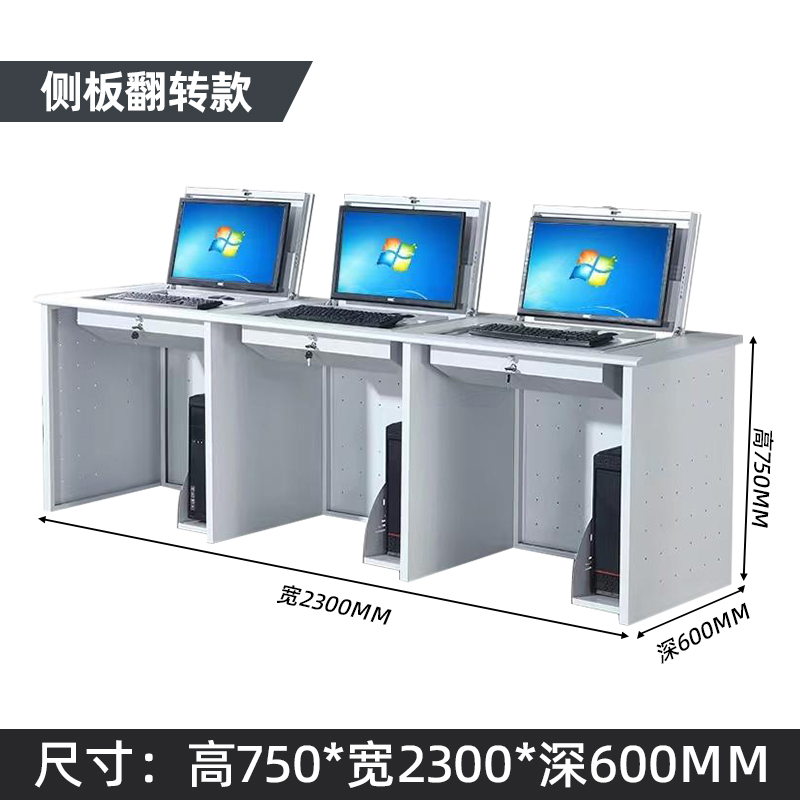 側板翻轉電腦桌三人位